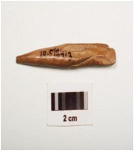 | Description / विवरण | A bne point with polished surface, pointed at one end, slightly broken at pointed end and rectangular cross section. |