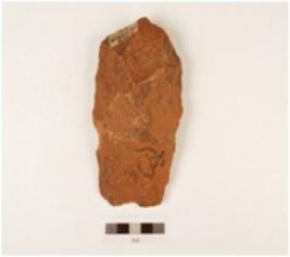 | Description / विवरण | A cleaver made on quartzite side struck flake, irregular cutting edges, flake marks on surface, plano convex in section. |