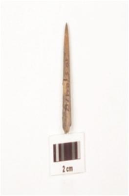 | Description / विवरण | Bone point, pointed one end other is broken slightly chipped off from surface and polished surface. |