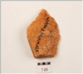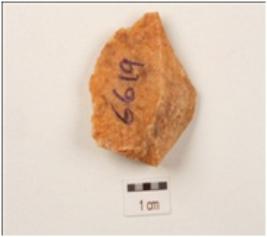 | Description / विवरण | Flake made on side struck flake blade scars on one side and bulb on ventral side, use wear marks on working edges, bi convex in section. |