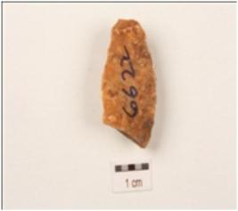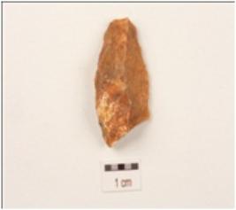 | Description / विवरण | Fragment of a blade made on quartz, double ridge on dorsal side and defused bulb on ventral side , use wear marks on working edges, trapezoidal in section. |