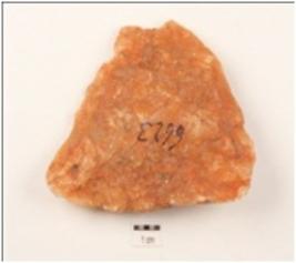 | Description / विवरण | Flake made on end , struck flake , flake scars on both sides, prepared platform on proximal end, use wear marks on working edges. |