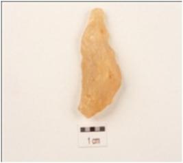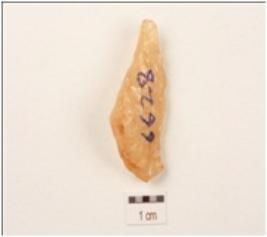 | Description / विवरण | Fragment of a blade made on quartz, single ridge on dorsal side and, use wear marks on working edges, triangular in section. |