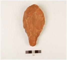 | Description / विवरण | A hand axe made on quartzite side struck flake, use wear edges, pointed end, flake scars on surface, biconvex in section. |