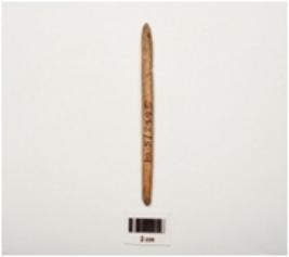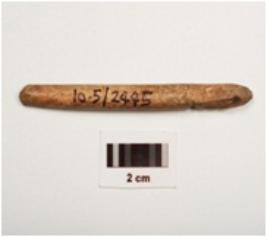 | Description / विवरण | Bone point with polished surface blunted at one end and circular cross section. |