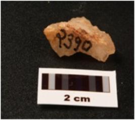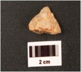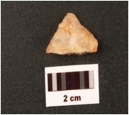 | Description / विवरण | Quartz core, triangular shape, sharp two edges, flaking on one surface. |