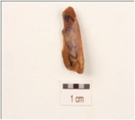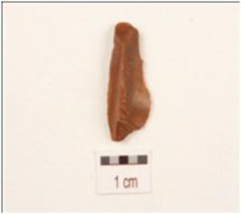 | Description / विवरण | Fragment of a balde made on quartz, bulb on ventral side and single ridge on dorsal side, use wear marks on working edges triangular in section. |