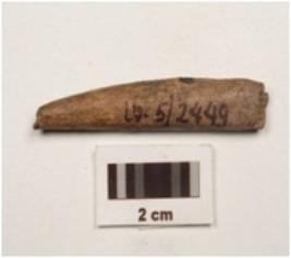 | Description / विवरण | Bone point, broken on both ends, polished surface and rough surface. |