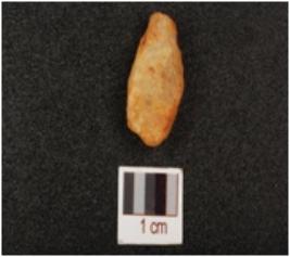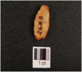 | Description / विवरण | A quartz flake, modified, prepared platform on proximal end, smooth ventral and bulb is absent. |
