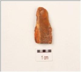 | Description / विवरण | Fragment of a blade made on quartz, bulb on ventral side and double ridge on dorsal side, use wear marks on working edges, trapezoidal in section. |