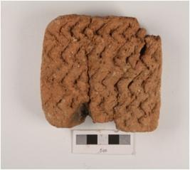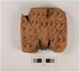 | Description / विवरण | Fragment of handmade terracotta rectangular skin rubber, series of notches on both the sides, red in colour and rough surface. |