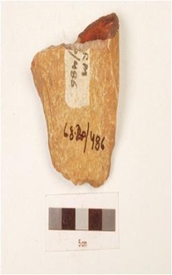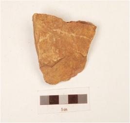 | Description / विवरण | Fragment of bifacial handaxe, made on quartzite with flake scars on dorsal and wavy working edge. |