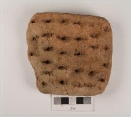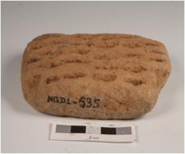 | Description / विवरण | Terracotta rectangular skin rubber, series of notches on both the sides, rough surface, dull red in colour and partly damaged. |