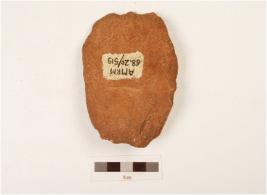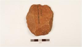 | Description / विवरण | A bifacial cleaver made on quartzite flake with flake scars on dorsal side, plano convex in section and use wear marks on cutting edge. |