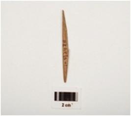 | Description / विवरण | Fragment of a bone point, polished surface with a pointed end, partly broken, brown in colour and rectangular in section. |