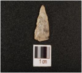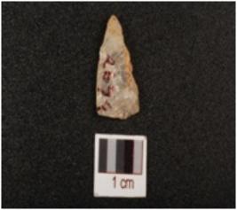 | Description / विवरण | A quartz flake, proximal end is pointed and flat-distal, uneven dorsal side and bulb is absent on ventral side. |