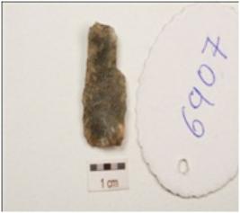 | Description / विवरण | Blade made on chert flake, flake scars on dorsal side , partly retouch cutting edges with slightly broken bulb of procussion on ventral side, prepared platform on proximal end. |