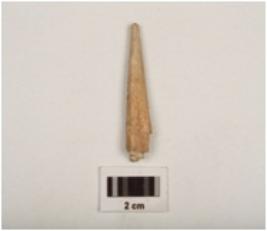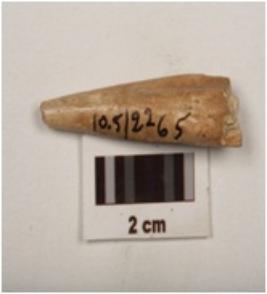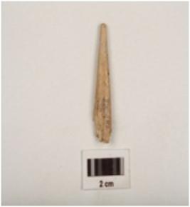 | Description / विवरण | Fragment of a bone point tapering towards a pointed end, smooth and polished surface, broken along other end. |
