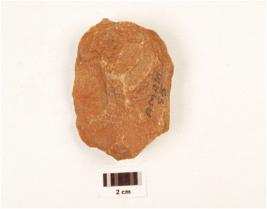 | Description / विवरण | A hand axe made on quartzite pebble, biconvex section, flake scars on both sides, prepared platform at proximal end. |