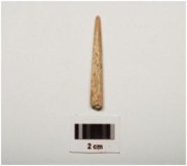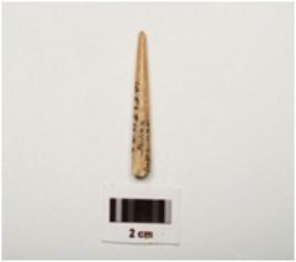 | Description / विवरण | Fragment of a bone point, polished surface with a pointed end, broken from other end, cream in colour and circular in section. |