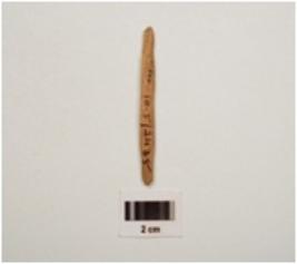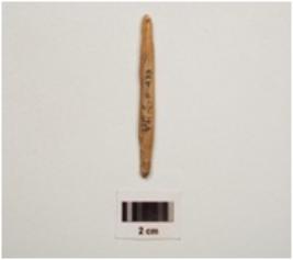 | Description / विवरण | Fragment of a bone awl , polished surface with one pointed end, light brown in colour and rectangular in section. |