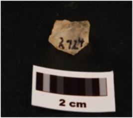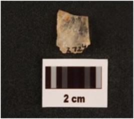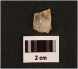 | Description / विवरण | Fragment of quartz blade with use-wear marks on edges, both ends broken, prepared platform, prominent bulb on ventral surface. |