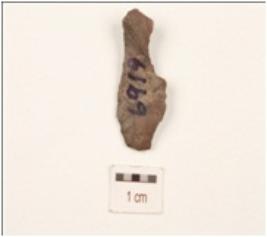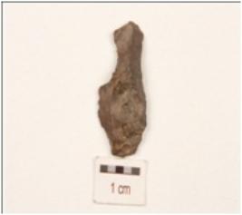 | Description / विवरण | Flake made on chert, use wear marks along the cutting edge, difffused bulb ventral side, triangular in section. |