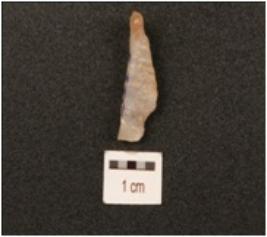 | Description / विवरण | Flake made on chert, use wear marks along the cutting edge, prepared platform triangular in section. |