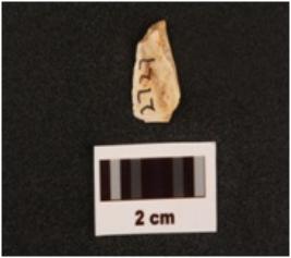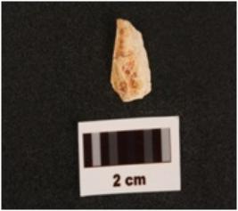 | Description / विवरण | Fragment of chert blade with blunt edges, both ends broken, two ridges on dorsal surface, diffused bulb on ventral surface. |
