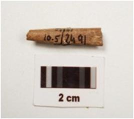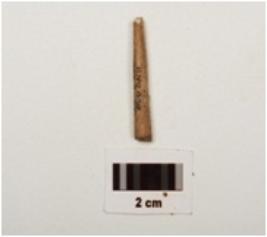 | Description / विवरण | Fragment of bone point , smooth surface , both ends are broken light brown in colour and circular in section. |