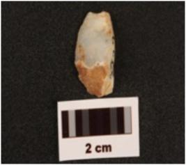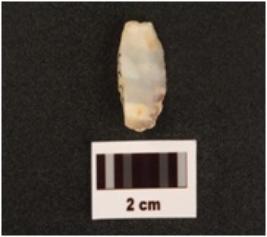| Description / विवरण | A quartz blade with use wear marks on cutting edges, cortex on dorsal surface, prominent bulb on ventral surface. |