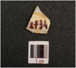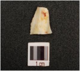 | Description / विवरण | Agate, fragment of a blade prepared platform diffused bulb on ventral side, broken along at distal end and use wear marks along at cutting edge. |