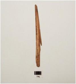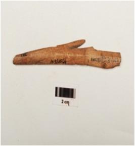 | Description / विवरण | Long bone harpoon with one barb, polished surface, lenticular in section and partly broken from both ends. |