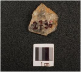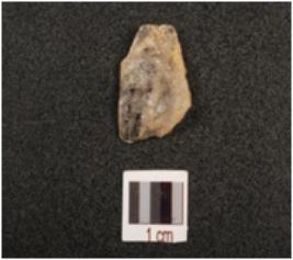 | Description / विवरण | Fragment of a quartz blade with an improminent ridge on dorsal side, broken along at proximal end with blunt edges. |