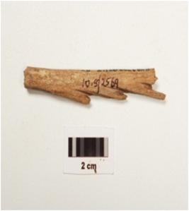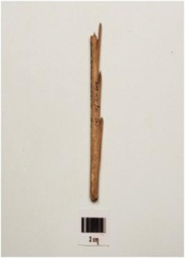 | Description / विवरण | Bone harpoon with three barbs, polished surface, oval in section, partly broken from both ends and light brown in colour. |