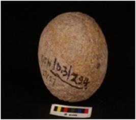 | Description / विवरण | A stone ball. Circular in shape. Rough surface and grey in colour. |