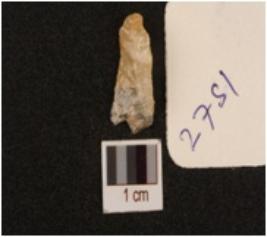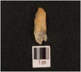 | Description / विवरण | A flake made on quartz with smooth surface, used wear marks along the edge. |