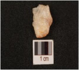 | Description / विवरण | A flake made on quartz with smooth surface, cortex is remains on surface. |