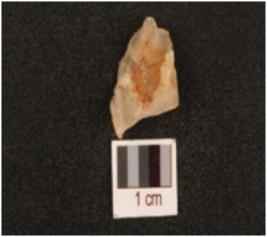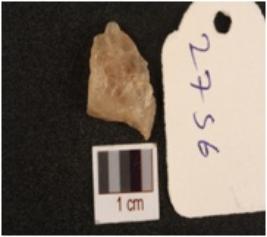 | Description / विवरण | A fragment of blade made on quartz, smooth surface, used wear marks on cutting edges. |