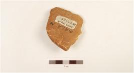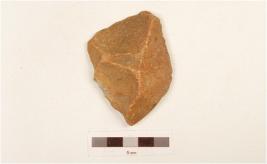 | Description / विवरण | Utilized flake, flake scars on both surface portion of cortex visible on one side, made on pebble, one side flat. |