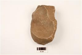 | Description / विवरण | A scraper made on quartzite, end struck, unifacial, convex in section, flake scars on dorsal side and flake scars on ventral side. |