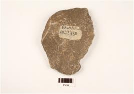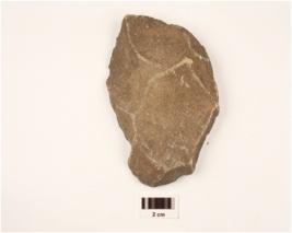 | Description / विवरण | A scraper made on quartzite, side struck, unifacial convex in section, flake scars on dorsal side and diffused bulb on ventral side, regular retouching marks on cutting edges. |