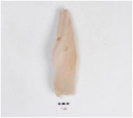| Description / विवरण | A flake made on chert stone with flake scars on the surface. |