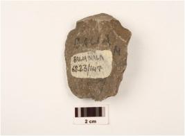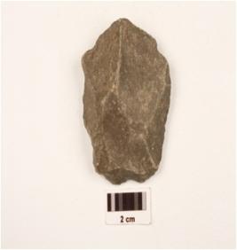 | Description / विवरण | A scraper made on quartzite, end struck, unifacial, flake scars on dorsal side, diffused bulb on ventral side, irregular retouching marks on cutting edges. |