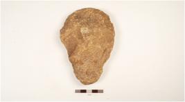 | Description / विवरण | Hand axe with a broad butt on one end and a pointed on other end, flakings visible on both sides, diamond shape cross section, made on nodule. |