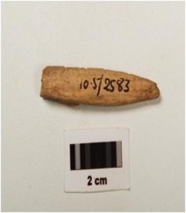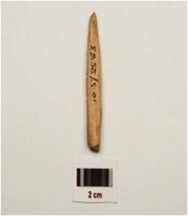 | Description / विवरण | A bone point with smooth surface pointed end, partly broken from both ends and cream in colour. |