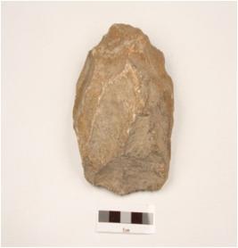 | Description / विवरण | A chopping tool made on quartzite end struck flake with use-wear marks on cutting edge, flake scars on both side, prepared platform, plano-convex in section. |