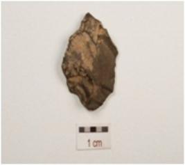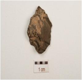 | Description / विवरण | Fragment of chert blade with mid ridge on dorsal, triangular in section, natural marks on ventral, use wear marks on cutting edge and broken along distal end. |