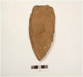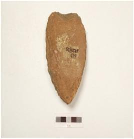 | Description / विवरण | A cleaver made of end struck quartzite flake, flake scars on both side, pointed one end, broad cutting edge, partly cortex visible on surface and plano convex in section. |