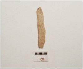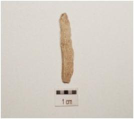 | Description / विवरण | Chert blade with single ridge on dorsal, triangular in section, diffused bulb on ventral and use wear marks on cutting edge. |